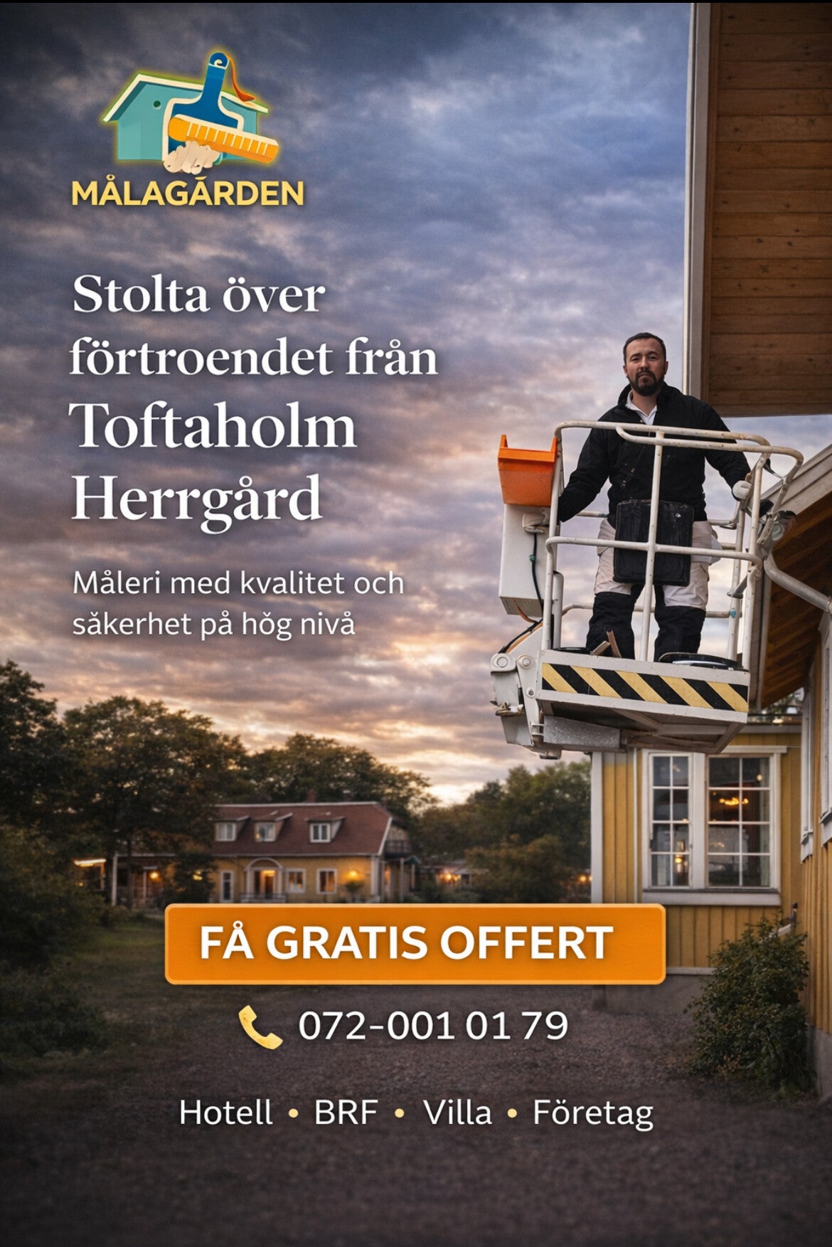 Målagården är stolta över att ha fått förtroendet att utföra måleriarbete på Toftaholm Herrgård. Projektet utfördes med stort fokus på kvalitet, noggrannhet och säkerhet för att säkerställa ett hållbart och professionellt resultat.